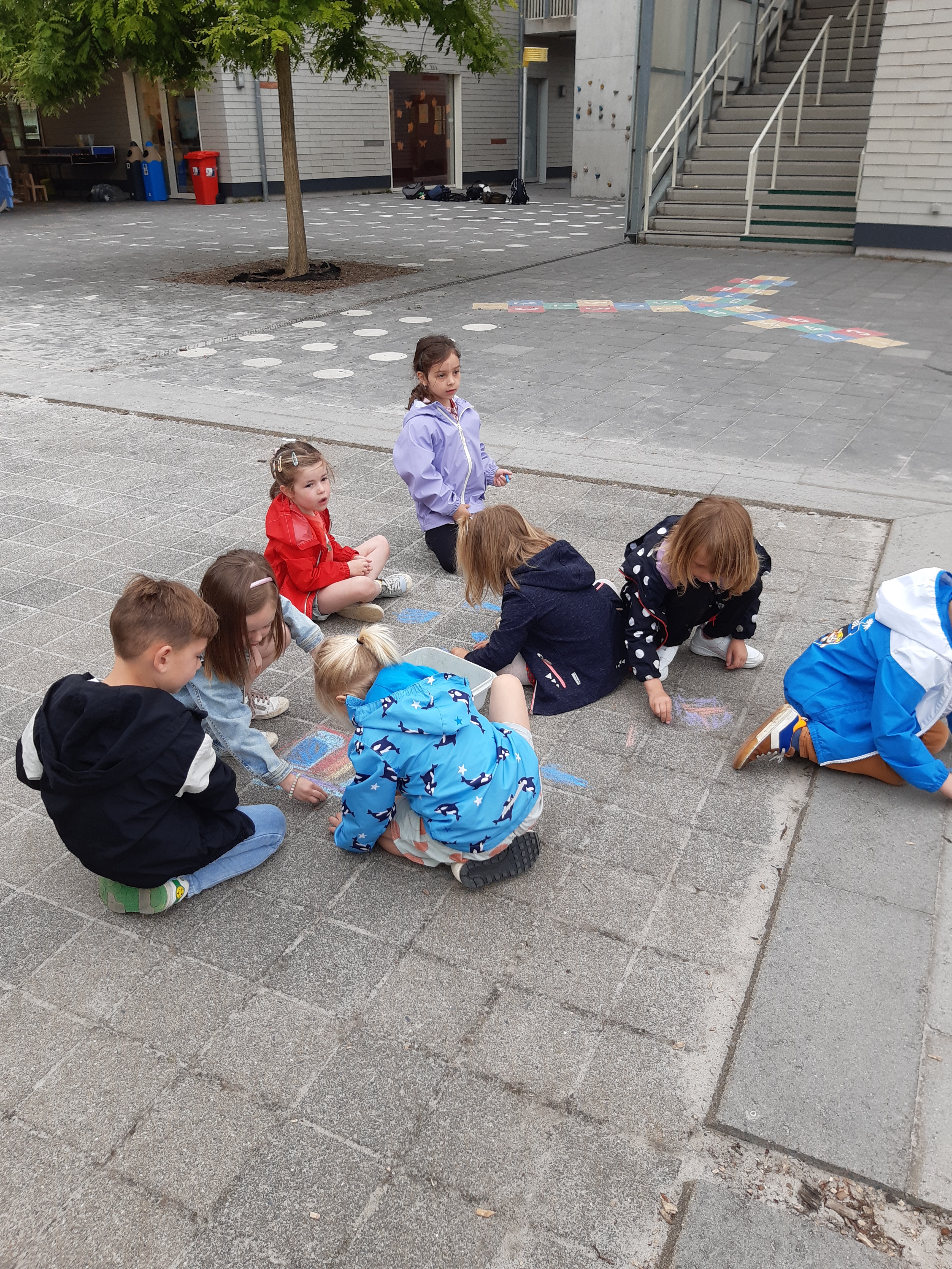 het springkasteel, dansen, fietsen, krijten, volksspelen,